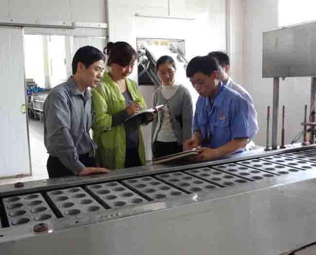 圖為馬所長在靈山石塘才藝食品機械有限公司與技術(shù)人員進行交流